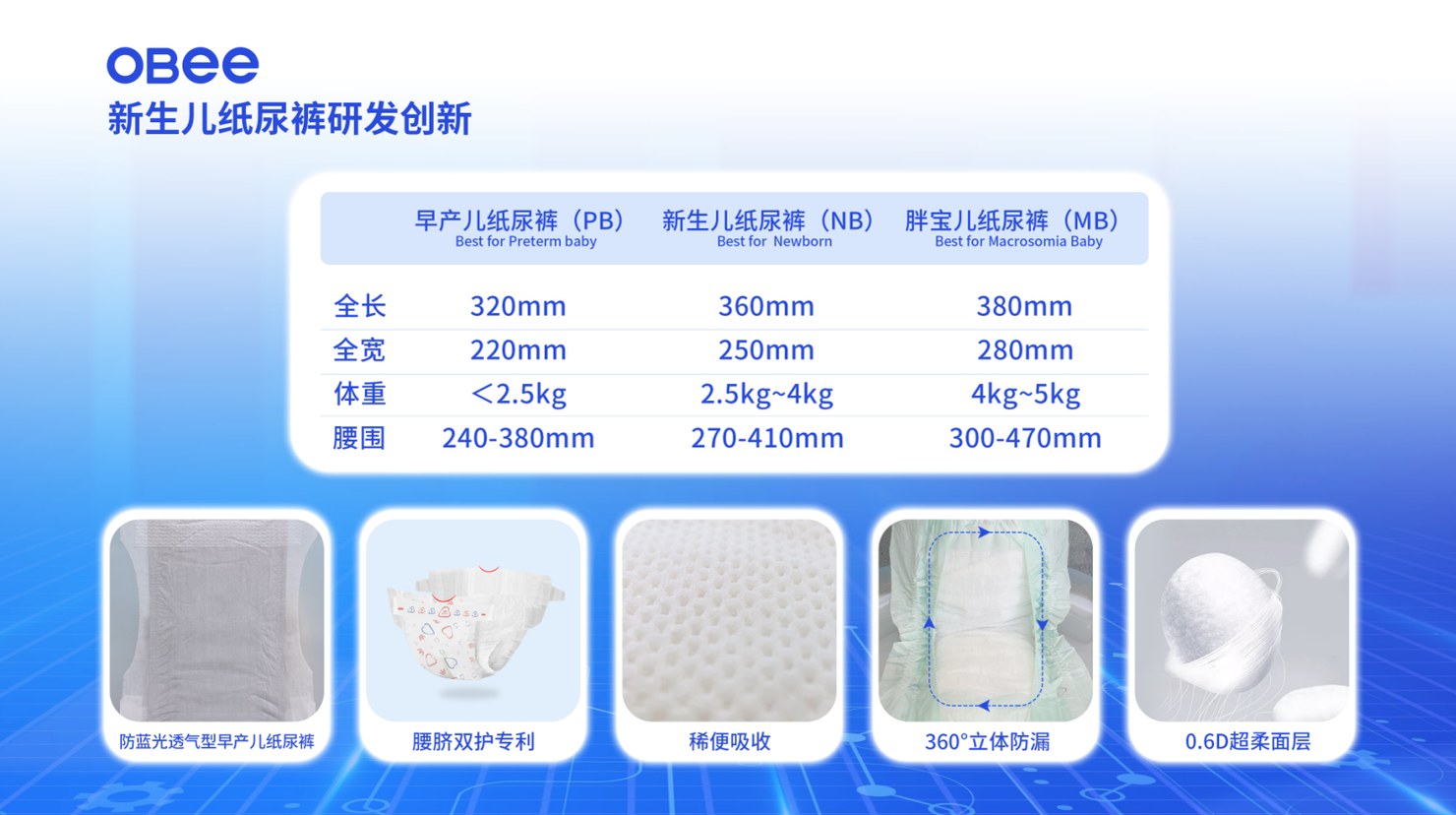 ·首创婴儿尿裤NB码双保护技术,开创肚脐U型切设计,以及弹性空腔腰围专利;