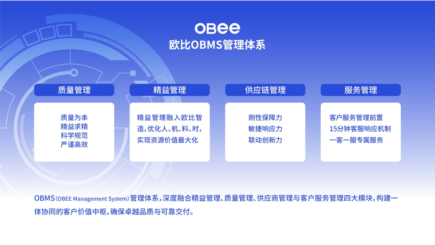 立足世界级智造,作为行业智能制造标杆企业,欧比始终坚持以技术创新驱动产业升级,通过十年匠心坚守与持续创新进化,现已建成二十余条国际领先的现代化全自动生产线,配备MES生产执行系统和工业物联网平台,实现生产全流程数字化管控。